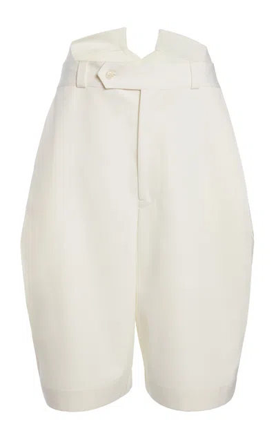 VICTORIA BECKHAM Tab Detailed Wool Blend Shorts In Ivory