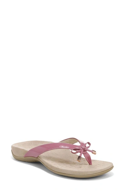 A dainty bow keeps things feminine while a podiatrist-designed footbed provides all-day comfort and support for this sporty-casual thong sandal.