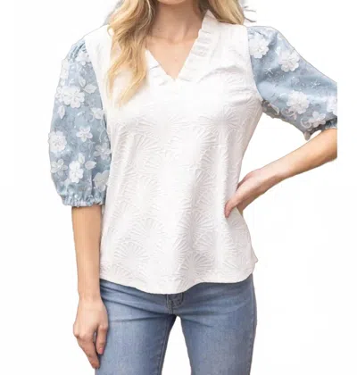 Pair this with your favorite jeans and slides for your next girls night out.Introducing the Jade Textured Top by Voy, a must-have addition to your spring wardrobe. This multi-colored top features a chic V-neckline adorned with ruffle details and eye-catching 3D floral contrast long sleeves. The top is designed for effortless style with a pull-on closure, perfectly suited for housewarming events and Hanukkah celebrations.