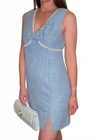 VOY Pearl Bow Tweed Dress In Baby Blue