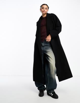 WEEKDAY Kia Wool Blend Oversized Coat With Tie Waist Detail In Black