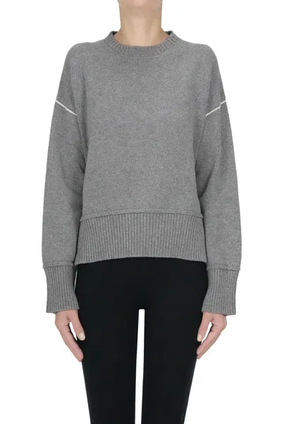Cropped boxy pullover, rounded neckline, ribbed trims, side slits. Sample size: 40 COMPOSITION: 45% Viscose 25% Wool 25% Nylon 5% Cashmere Made in Italy