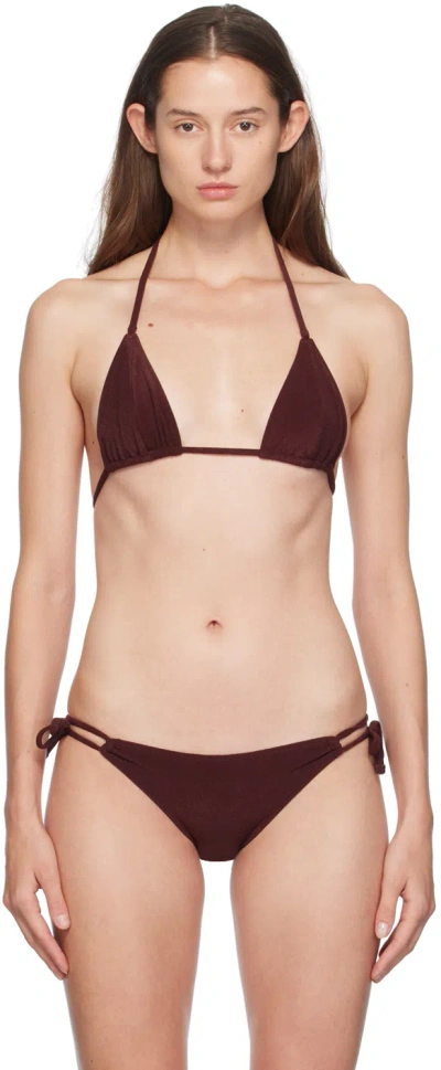 YASMINE ESLAMI Burgundy Mica Bikini Top In Chocolate