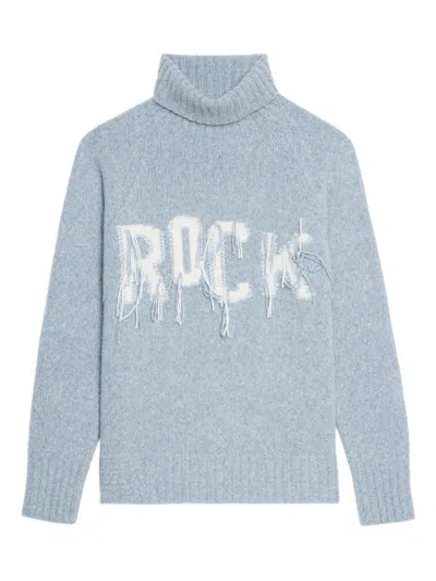 Bring the edge to your cold-weather style with this turtleneck sweater featuring a jacquard 'Rock' design featuring loose-yarn detail. Turtleneck Long sleeves 100% merino wool Machine wash, dry flat Imported