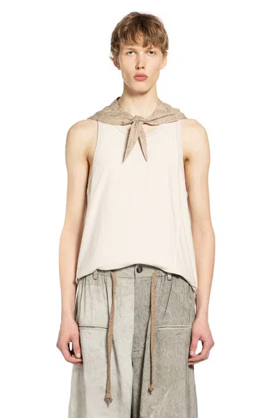 The Basic Tank Top in Light Beige embodies Ziggy Chen's focus on materiality and structural simplicity, where raw-edge seams and clean lines articulate the brand's subtle, modern avant-garde language.beigecotton jerseyraw-edge bias seamsscoop necksleevelessraw-edge hemrelaxed fit