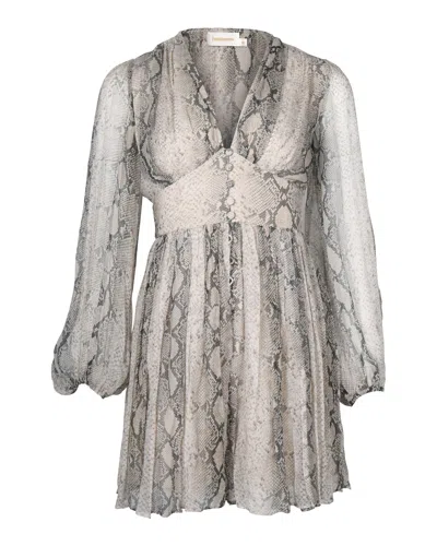 ZIMMERMANN Corsage Long-sleeve Fluted Romper In Snake-print Silk In Multi