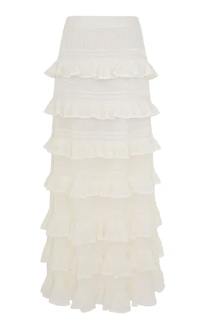 ZIMMERMANN Illuminate Ruffled Knit Maxi Skirt In Beige